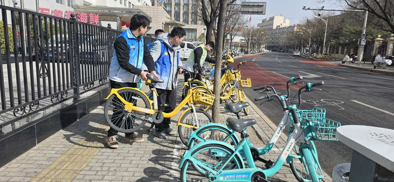 活动中,公司青年志愿者前往公司附近,针对共享单车乱停乱放、倒伏歪斜等问题,分工协作扶起倒伏车辆、规范停放位置,保障市民出行畅通、改善街头环境。